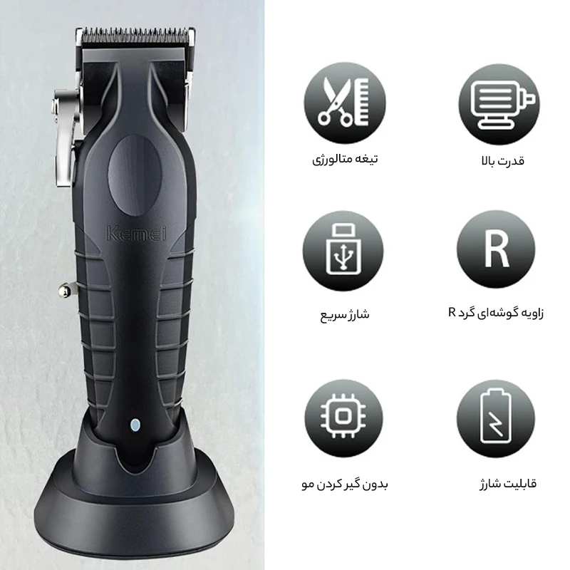 ماشین اصلاح کیمی مدل KM-2296 یک دستگاه حرفه ای و با کیفیت است که می تواند نیازهای اصلاح موهای شما را برآورده کند. این ماشین اصلاح با توان مصرفی 5 وات و باتری 2500 میلی آمپر ساعت، قابلیت شارژدهی 350 دقیقه را دارد. برای شارژ کامل باتری فقط 3.5 ساعت زمان لازم است و با چراغ نشانگر شارژ می توانید وضعیت باتری را مشاهده کنید. تیغه های این ماشین اصلاح از جنس کربن استیل هستند که بسیار تیز و مقاوم هستند.